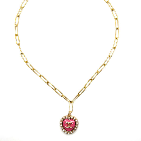 Berry Pink & Pearly Heart Necklace