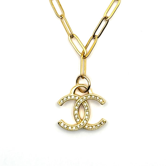 All Gold Tone & Crystal Necklace