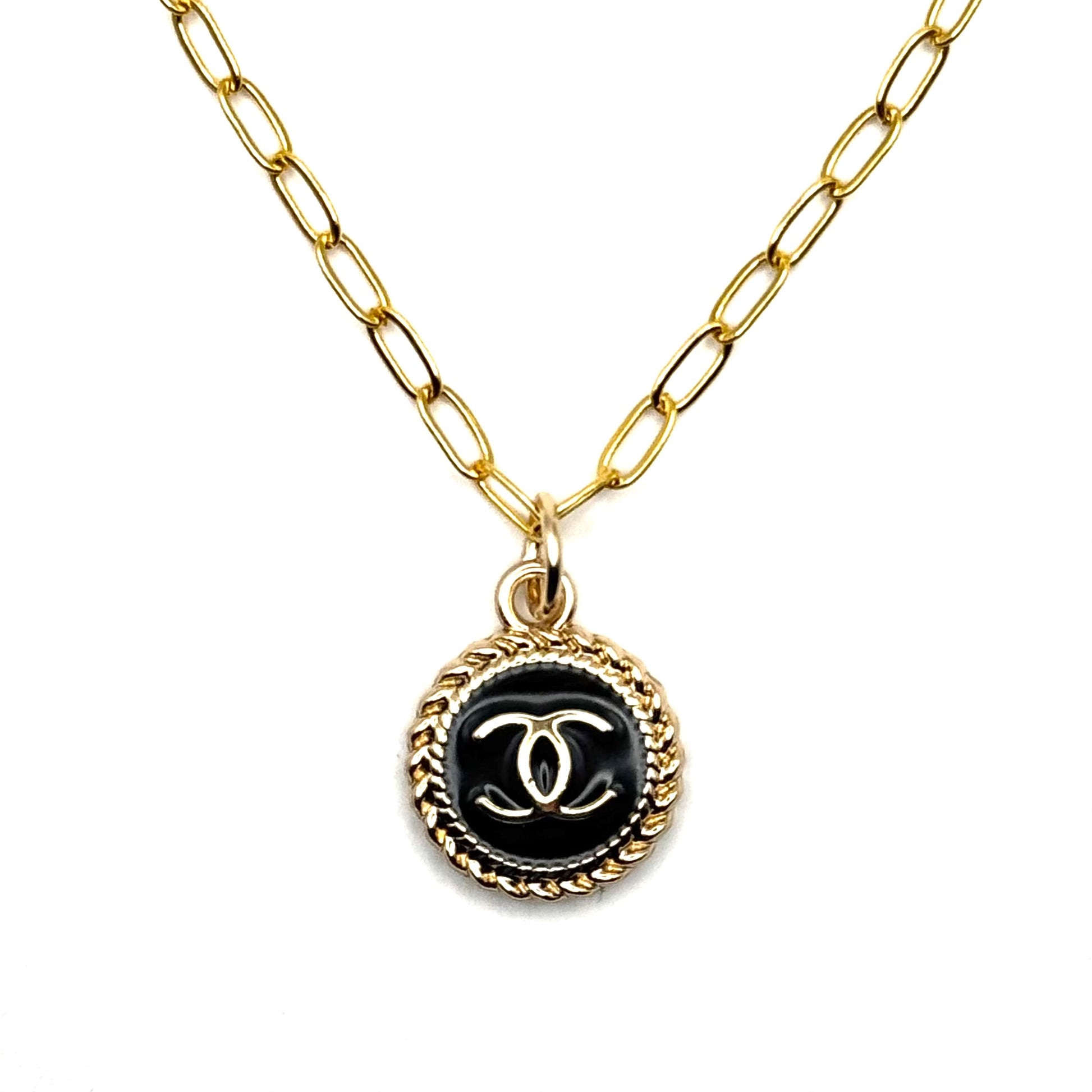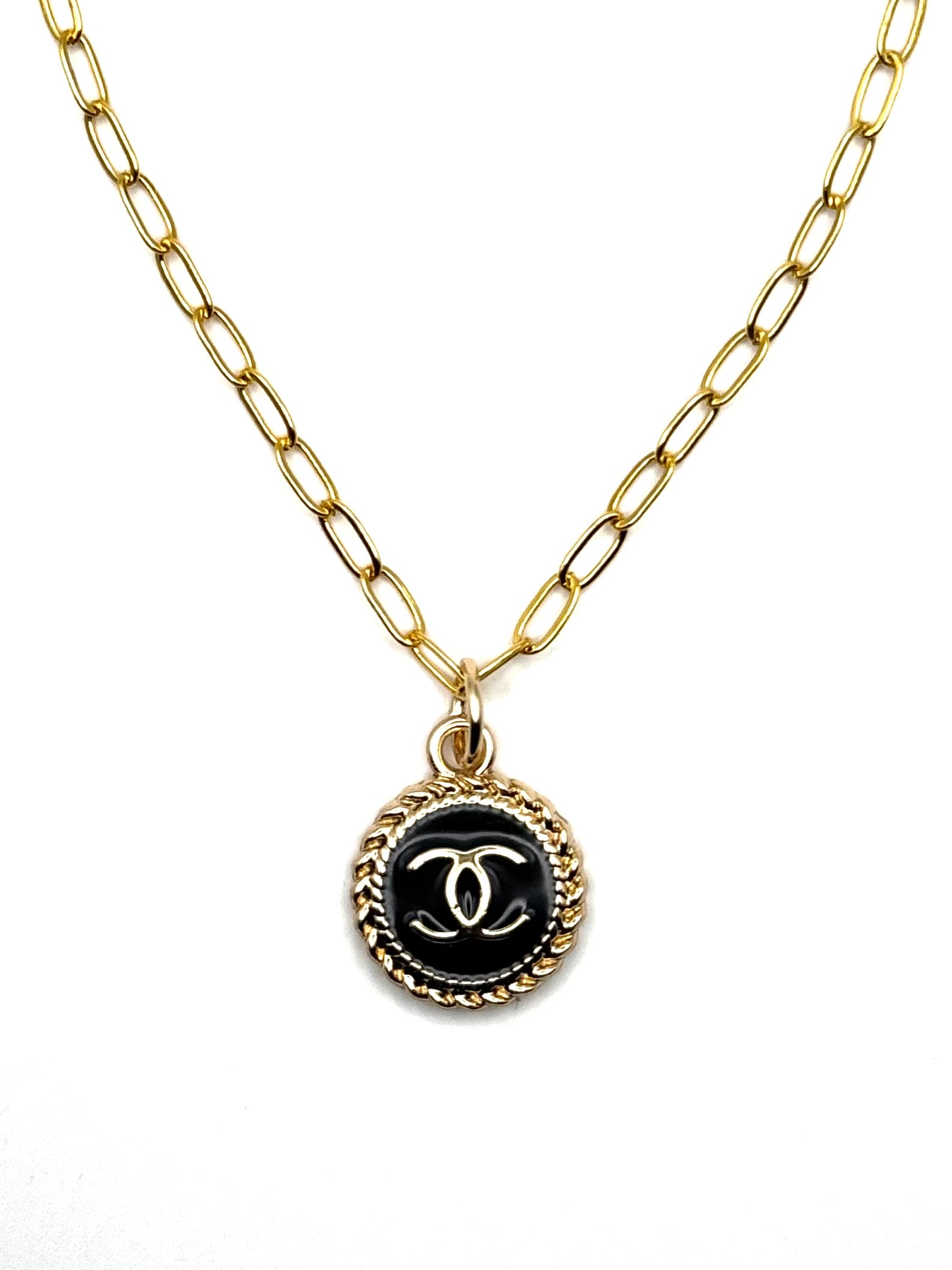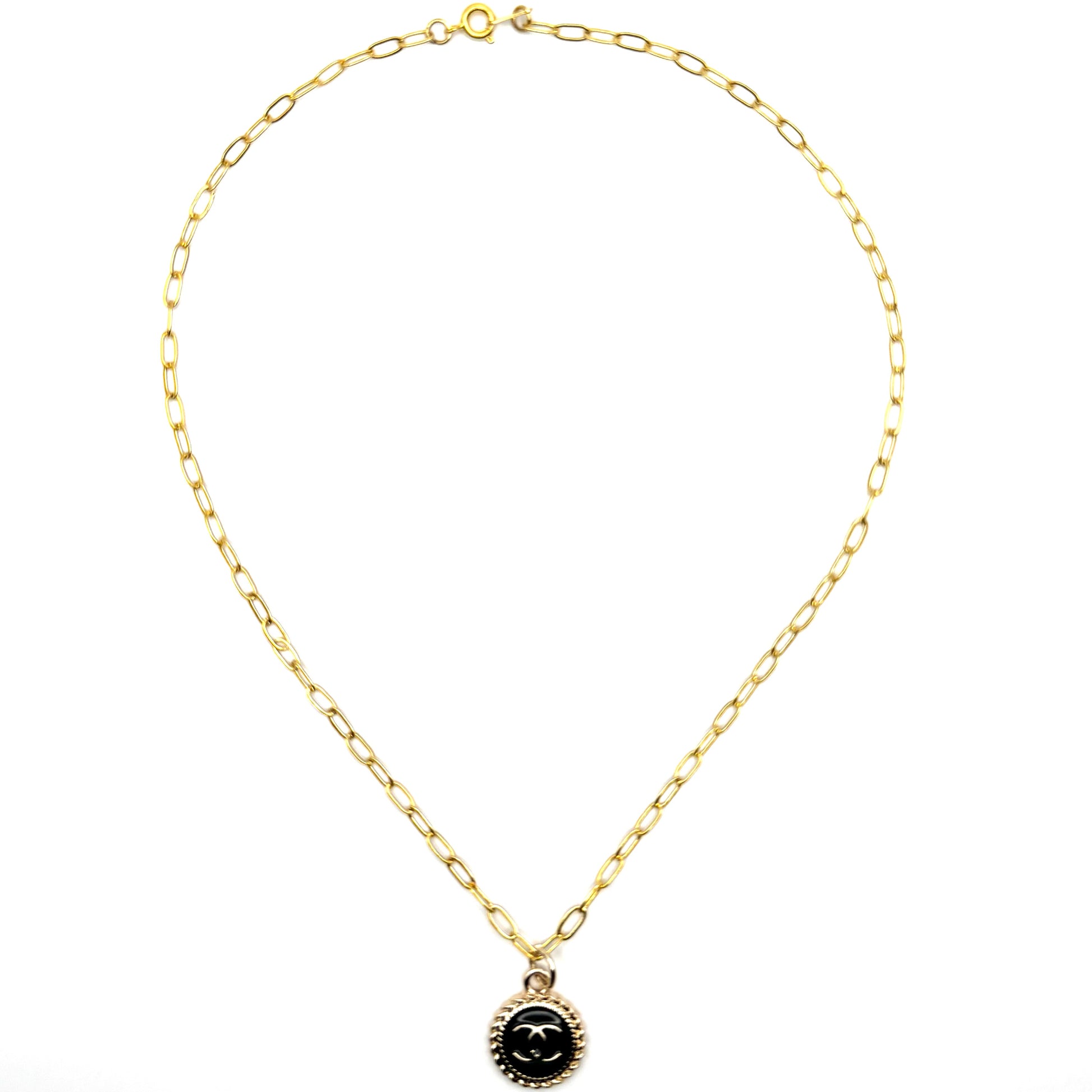 Handmade 16 inch gold plated petite paperclip chain necklace featuring repurposed black enamel luxury zipper pull. Charm measures about 1/2 inch.