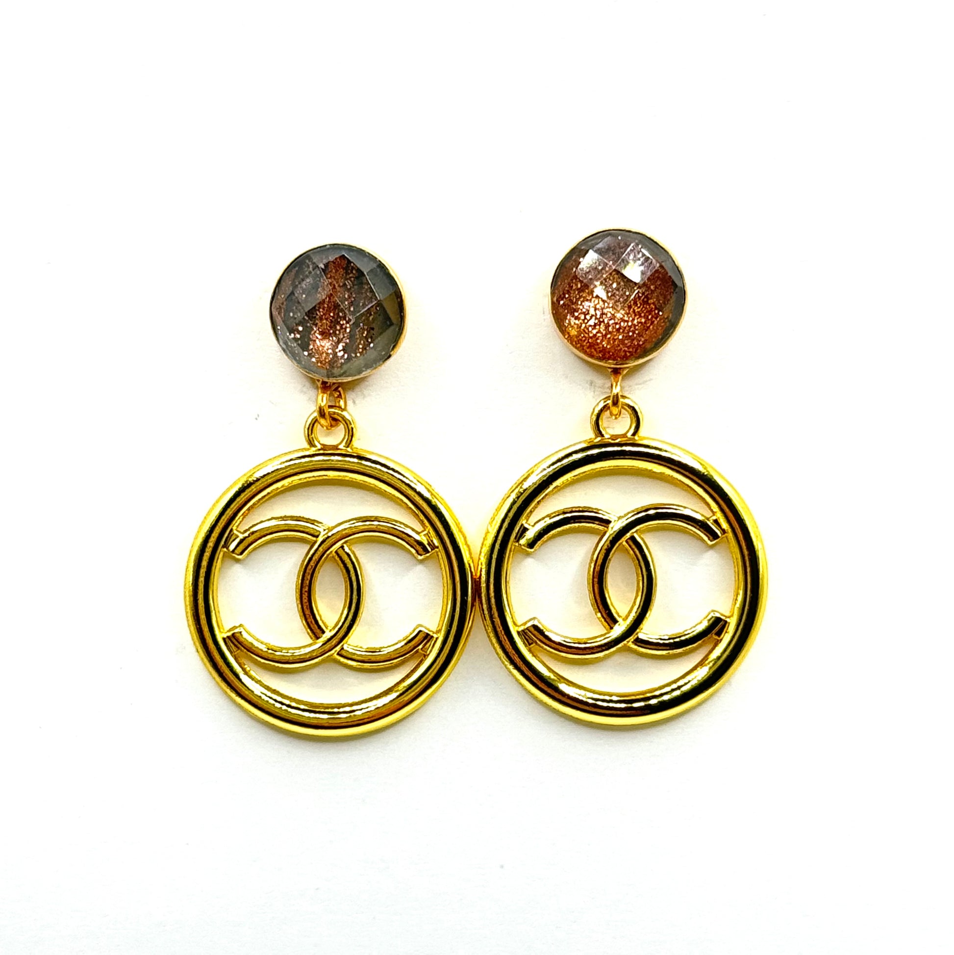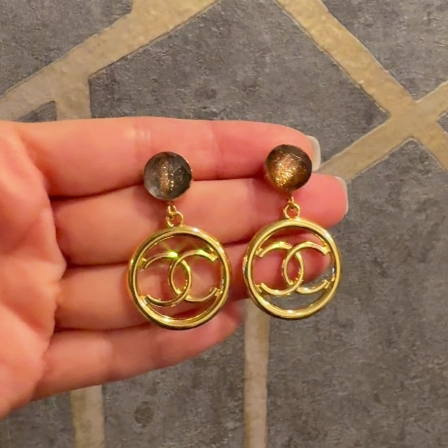Shiny gold-toned earrings handmade from upcycled luxury zipper pulls. Featuring gold plated, copper infused stud earring posts. Drop is about 1.5 inches long.